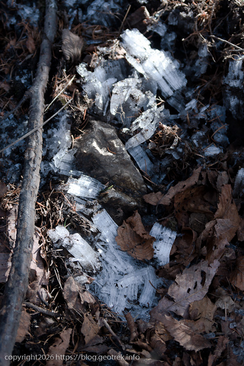 日射しがポカポカしているが、日陰には霜柱が残る。