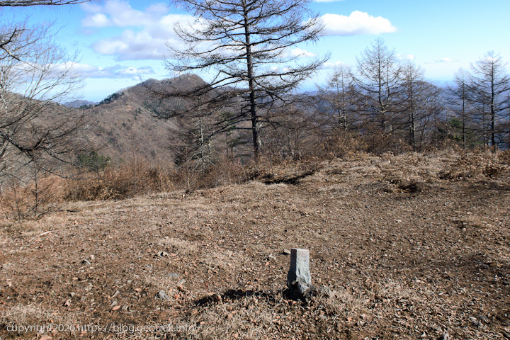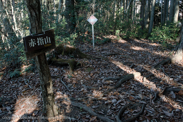 林道終点からしっかりと踏まれた道?をたどるとすぐに赤指山の山頂。