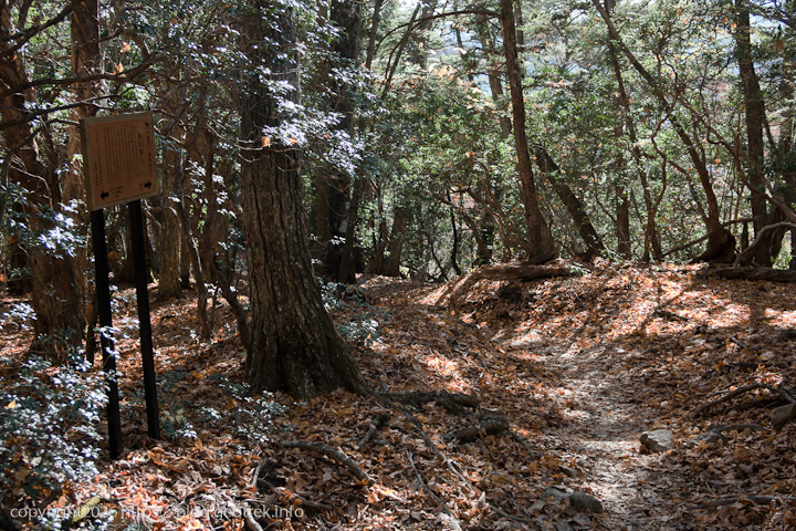 堂所から先は、道は登り尾根をトラバースしてついている。遊歩道のように走りやすい道が続く。