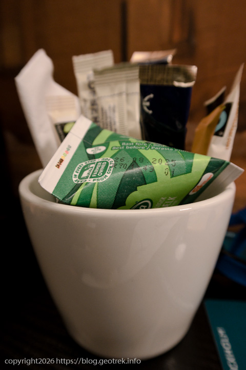 コーヒーミルクの容器は、日本はプラスチックだが、ここで紙のテトラパック。エコの国。