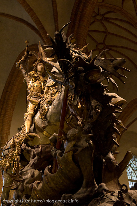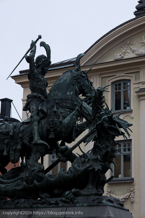 坂道が交わるKöpmantorgetという小さな広場に、セントジョージとドランゴンの像があった。